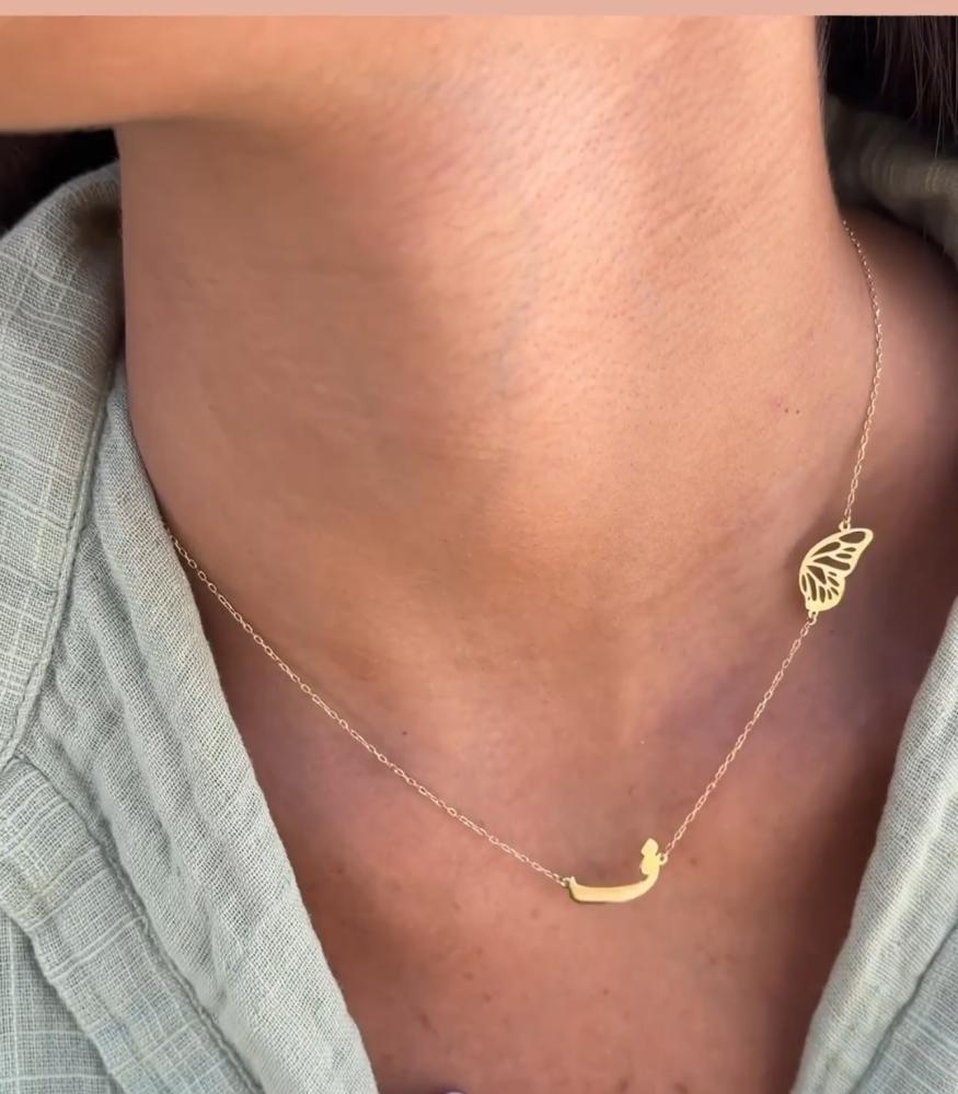 سلسال حرف مع فراشه مطلي ذهب