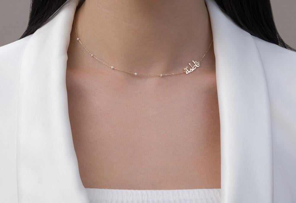 سلسال يحمِل الإسم مع إضافة حبه للؤلؤ يتم صياغة الاسم حسب طلبك